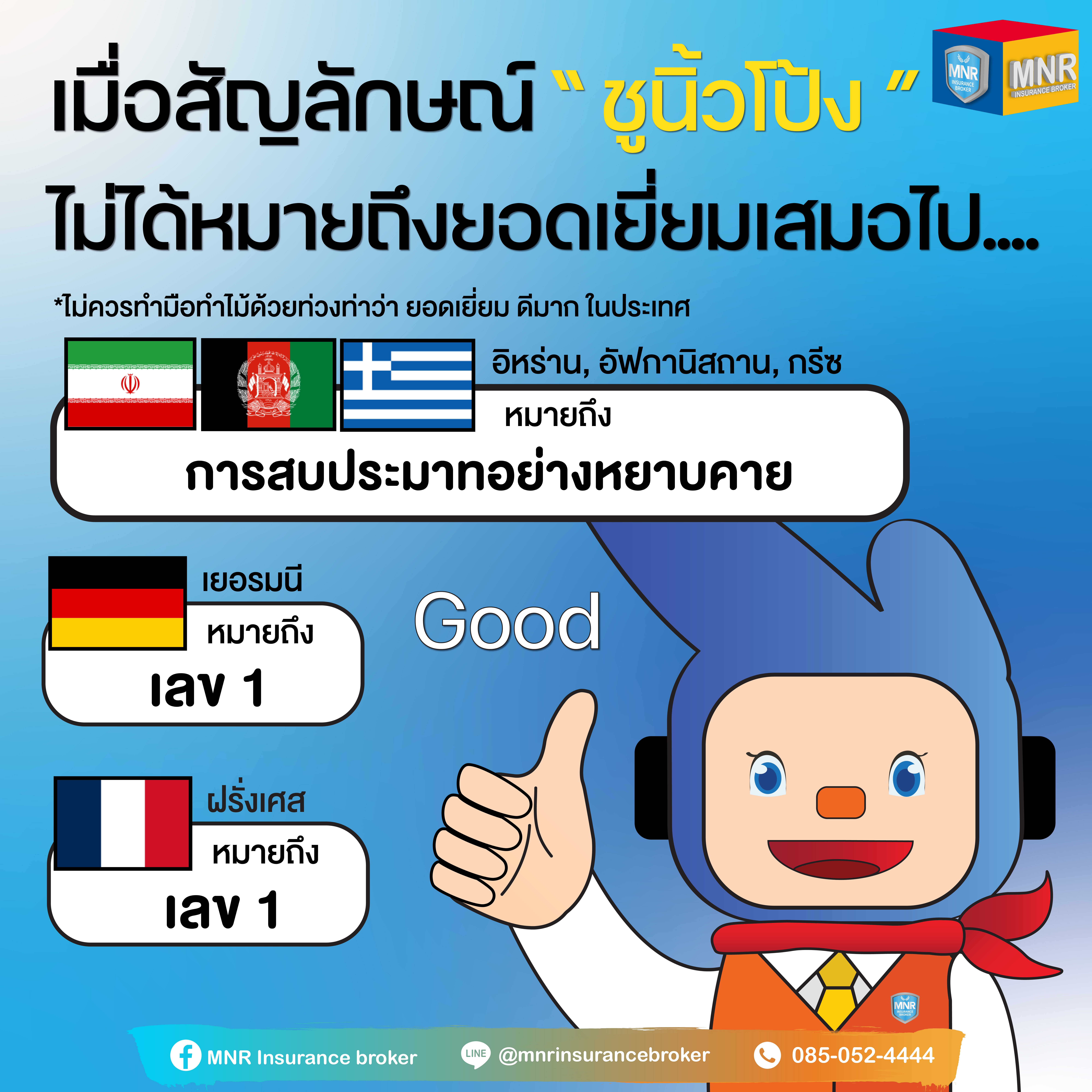 ไม่ควรทำ : ประเทศบราซิล หมายถึง ยกนิ้วกลาง และฝรั่งเศส,อิตาลี หมายถึงเลข 0 หรือไม่มีค่า