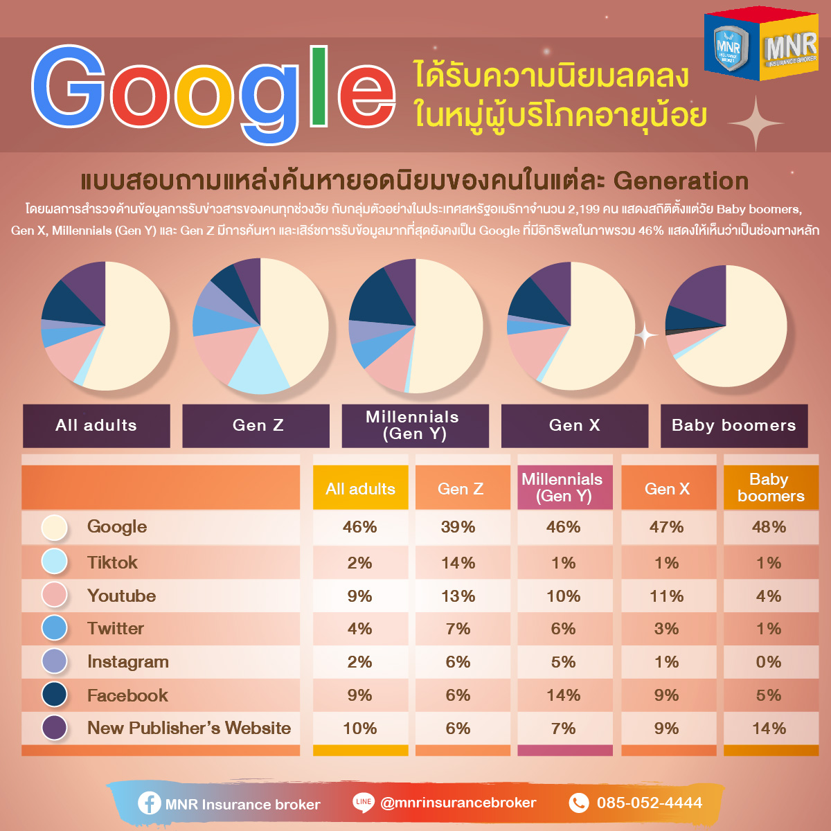 Gen X, Millennials (Gen Y) และ Gen Z มีการค้นหา และเสิร์ชการรับข้อมูลมากที่สุดยังคงเป็น Google ที่มีอิทธิพลในภาพรวม 46% แสดงให้เห็นว่าเป็นช่องทางหลัก