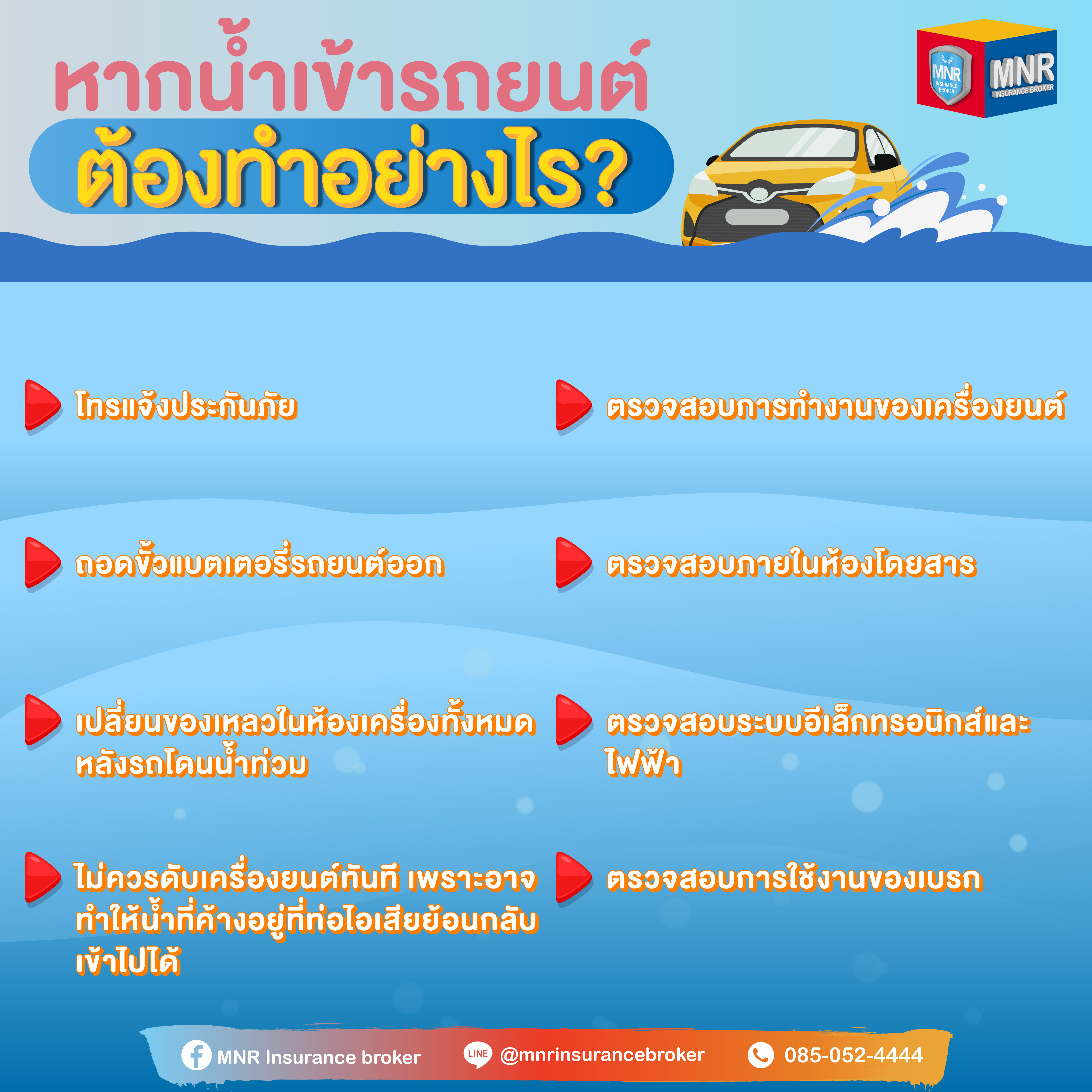 น้ำท่วมรถยนต์มักเป็นปัญหาใหญ่ที่น่าหนักใจเมื่อนึกถึงความเสียหายที่จะเกิดขึ้นกับรถ หากคุณกำลังมองหาประกันภัยรถยนต์หรือต้องการทำประกันภัยรถยนต์ ที่สามารถคุ้มครองภัยธรรมชาติน้ำท่วม เราขอแนะนำทำประกันภัยรถยนต์กับเราบริษัทเอ็มเอ็นอาร์ อินชัวรันส์ โบรกเกอร์ มีครบทุกชั้นประกันภัยรถยนต์