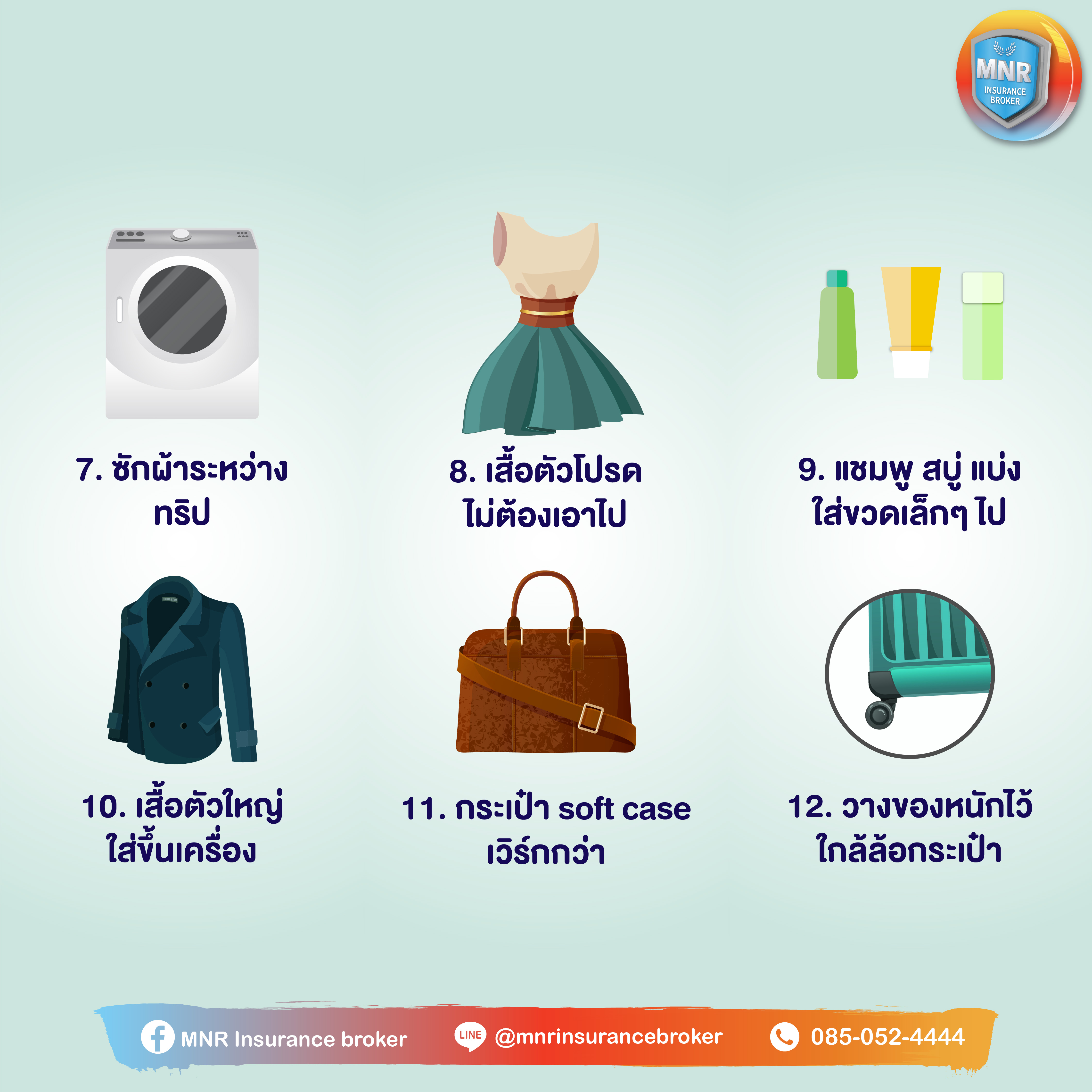 การจัดกระเป๋าเพื่อเดินทางทุกครั้งให้คิดเผื่อไว้ว่า กระเป๋าทั้งกระเป๋าอาจมีโอกาสหายระหว่างทาง ฉะนั้น เสื้อตัวโปรดหรือเครื่องประดับที่แฟนซื้อให้ ถ้าไม่จำเป็นก็ไม่ต้องพกไปหรอก
