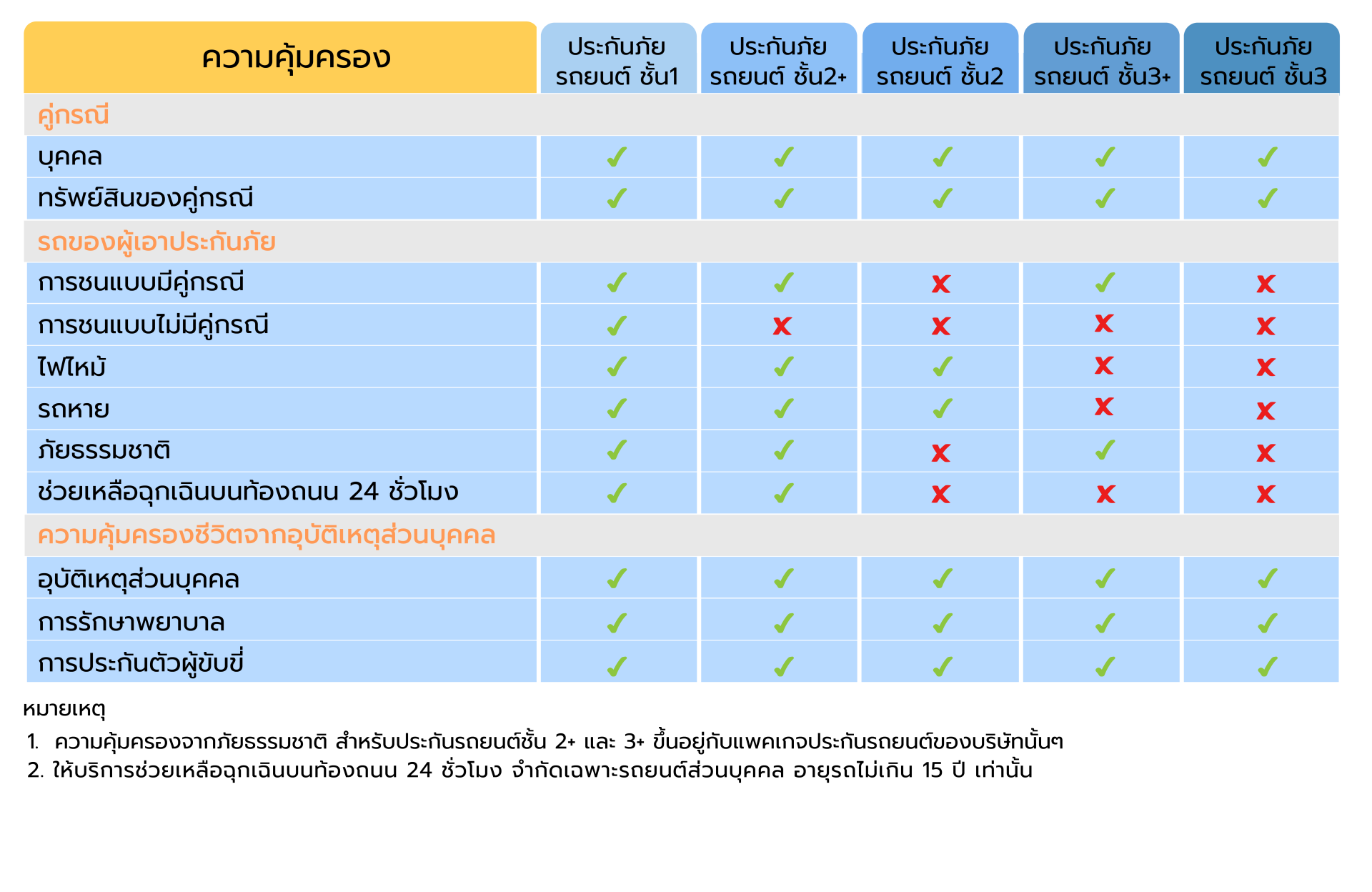 ประกันรถยนต์ชั้น 1 ให้ความคุ้มครองที่ครอบคลุมมากที่สุด โดยเฉพาะความเสียหายต่อตัวรถจากอุบัติเหตุ ไม่ว่าจะเป็นฝ่ายผิดหรือฝ่ายถูก หรือแม้แต่ความเสียหายที่ไม่มีคู่กรณี ประกันชั้น 1 จะคุ้มครองความเสียหายจากอุบัติเหตุที่ไม่คาดฝัน เช่น การถูกสุนัขตัดหน้ารถ รถชนรั้วบ้าน จึงเหมาะสำหรับมือใหม่หัดขับที่ยังไม่ชำนาญในการขับ ช่วยทำให้เรามั่นใจและเดินทางปลอดภัยมากยิ่งขึ้น